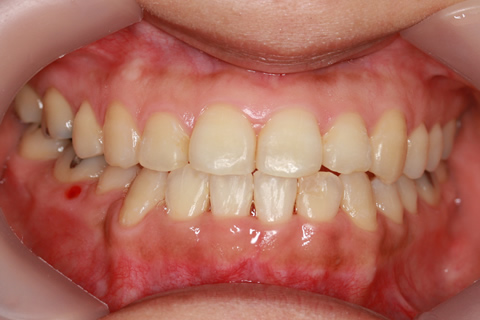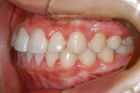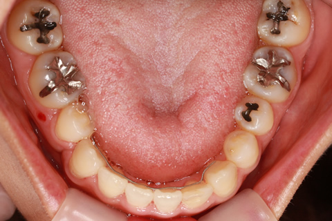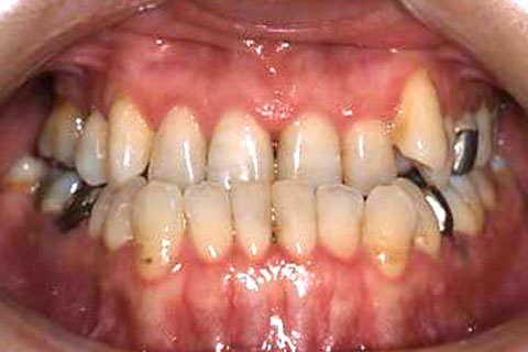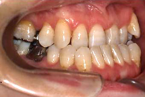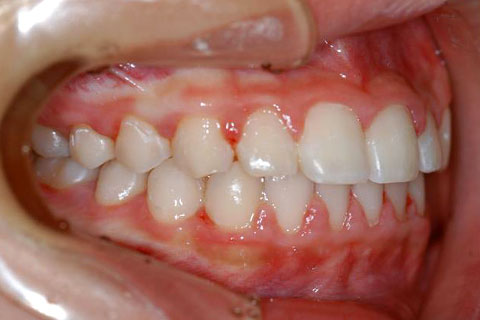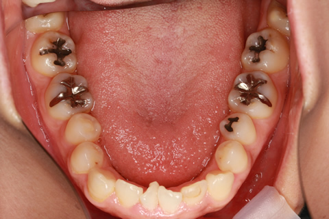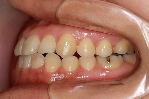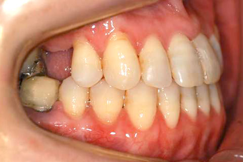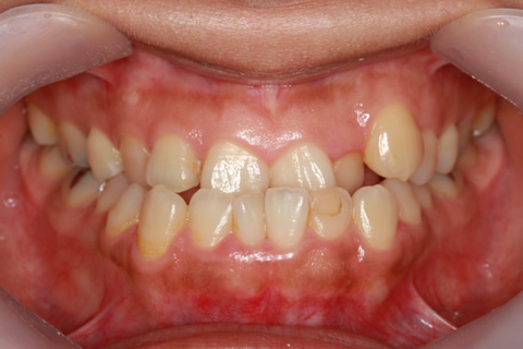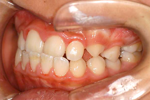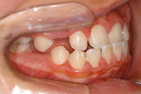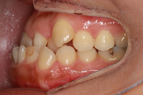 下あごが上あごより突出しているか、上あごが下あごより後退している状態で、咬み合わせが逆になっているので反対咬合ともいいます。お子様の場合、受け口(反対咬合)を放置していると、成長期において下あごが過大に成長し悪化しますので、出来る限り早い時期に治療することをおすすめします。受け口(反対咬合)は見た目の問題だけでなく顎の動きを制限し、将来的に顎の痛み(顎関節症)を引き起こす場合があります。また、お子様の場合は、正常な上顎の成長を阻害する可能性があります。