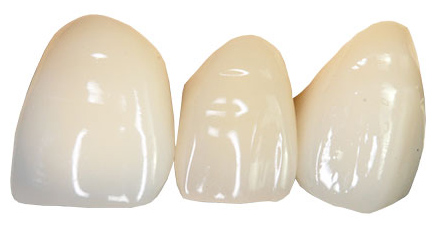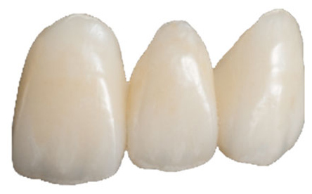 金属にプラスチックを貼り付けたものです。健康保険が適用になります。数ヶ月~数年で黄色く変色します。プラークがつきやすいため注意が必要です。強度的に弱いため破折する恐れがあります。