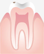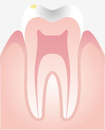 歯の表面のエナメル質だけが虫歯になっている状態です。歯の表面がザラついたり、シミや小さな黒い点ができますが、痛みはありません。